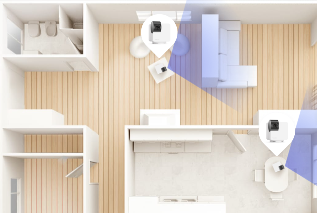 - Širokoúhlý objektiv: Zachyťte každý kout místnosti díky širokému 360° zornému poli.